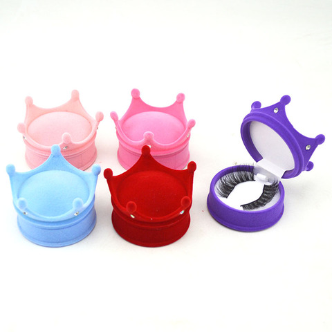 Lüks çeşitli renkli kadife yuvarlak daire taç şekli boş kirpik kutusu kozmetik ambalaj kapları plastik ambalaj