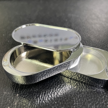 ตลับเครื่องสำอางโลหะขนาดกะทัดรัดดีไซน์แบบเลื่อนสีเงินสำหรับน้ำหอมที่เป็นของแข็งบาล์มบลัชออนแป้งฝุ่น-สำหรับเก็บเครื่องสำอาง
